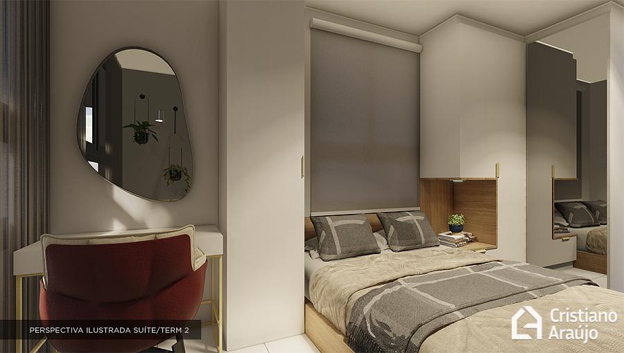 Unidades com 1 suíte e área privativa de 43,39m².